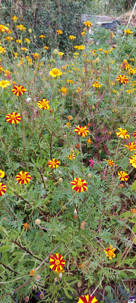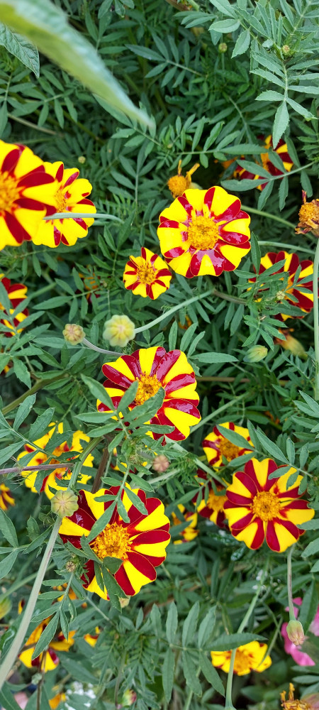 Сам цветочек, как на фото, цветов много. Но! Сами кусты выросли огромные, ветвистые, выше метра. Я люблю тонколистные бархатцы, но когда они пониже, смотрятся тогда лучше. Например, те же "почётный крест". Но, повторюсь, цветочек сам очень "прикольный"))).