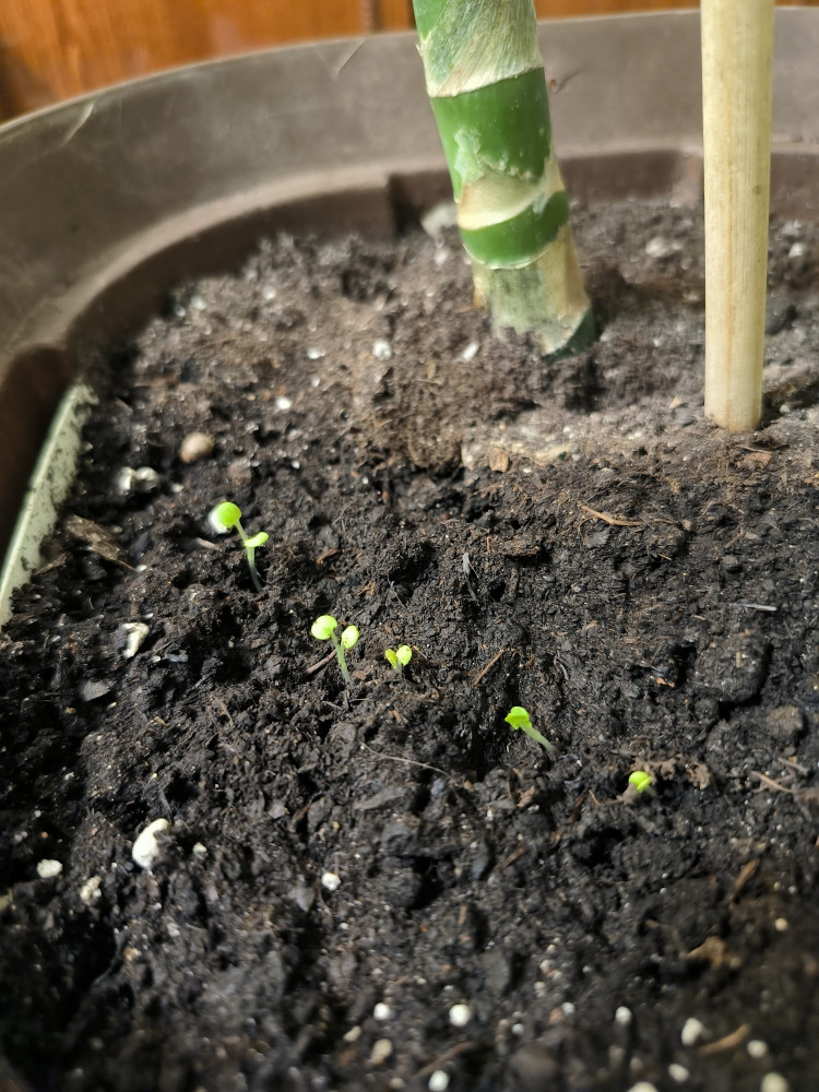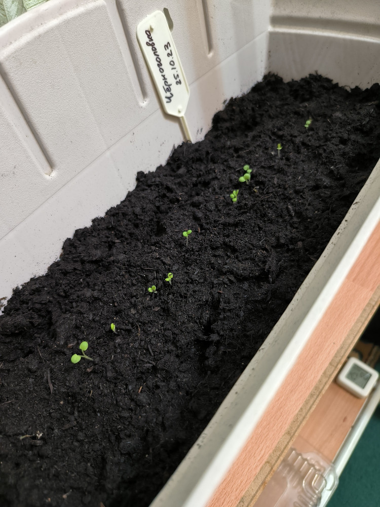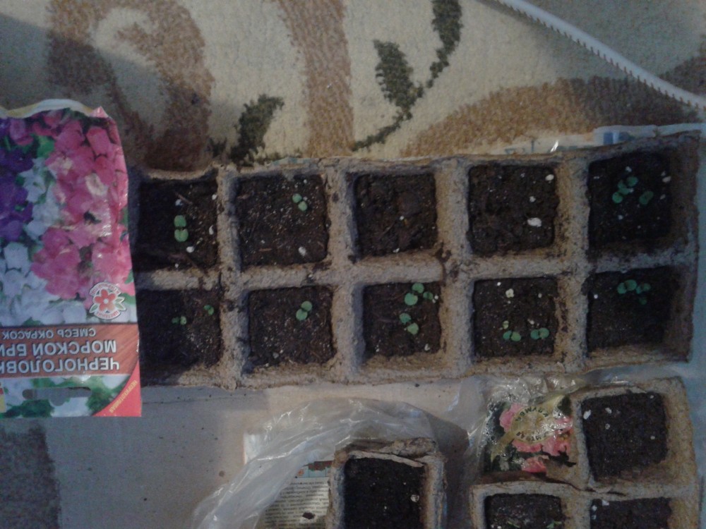 Посеял в два горшка, накрыл клеёнкой. Через 7 и 10 дней семена проросли.
