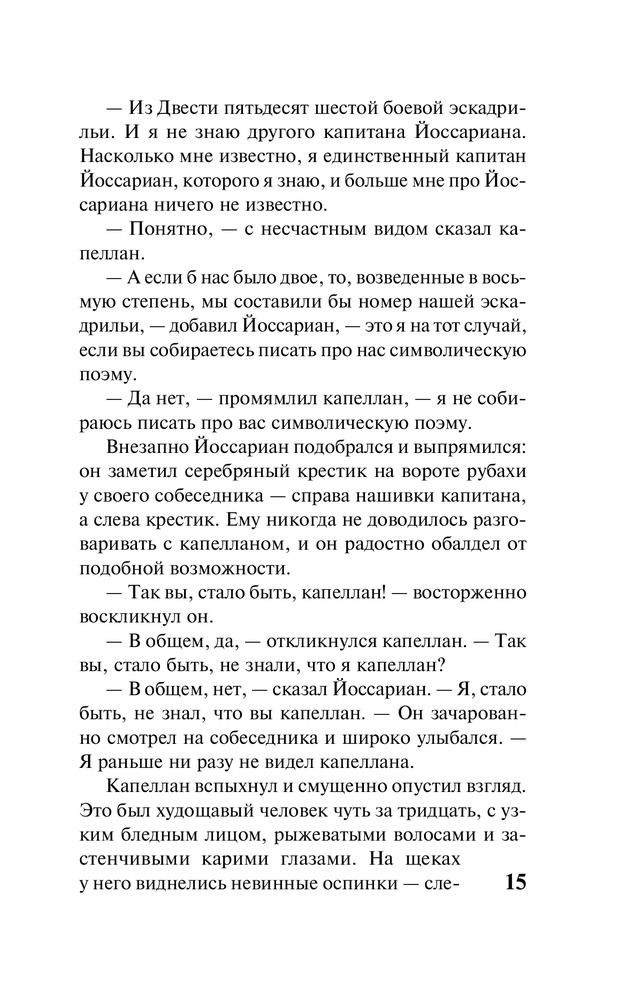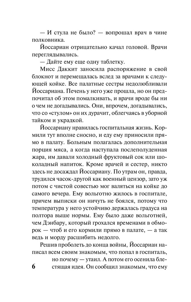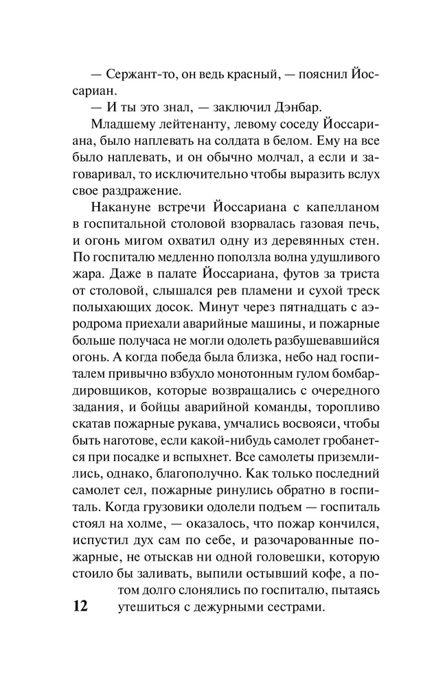 Уже писал комментарий к версии на твердом переплете. Напишу и здесь, чтобы люди видели. Сама книга просто шедевр, с первой и до последней страницы. А вот данный перевод отвратительный. Никому не рекомендую в этом переводе покупать. Несмотря на правильный перевод самого названия, текст произведения испоганен бестолковым переводчиком. Человек абсолютно не знает как правильно переводить, не знает, что такое смысловой перевод и тупо делает пословную копирку. Рекомендую поискать в интернете перевод с названием "Уловка 22", чтобы просто понять насколько переводчик может влиять на произведение.