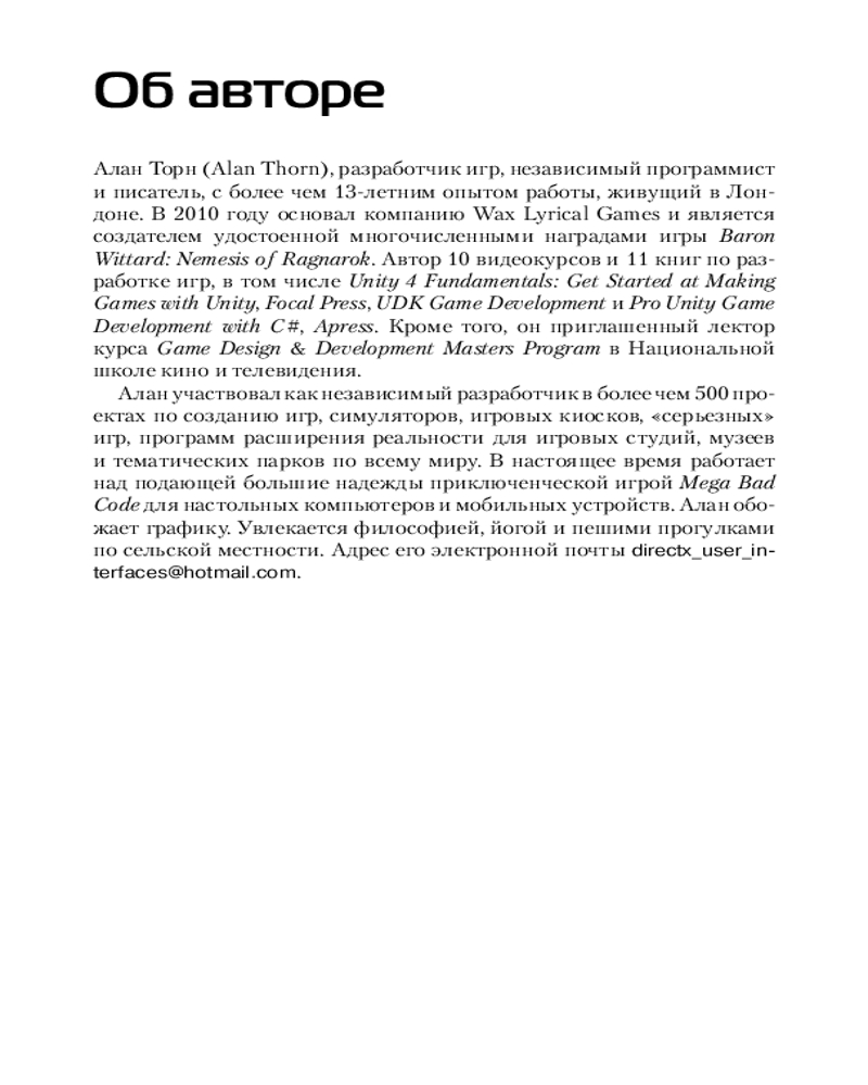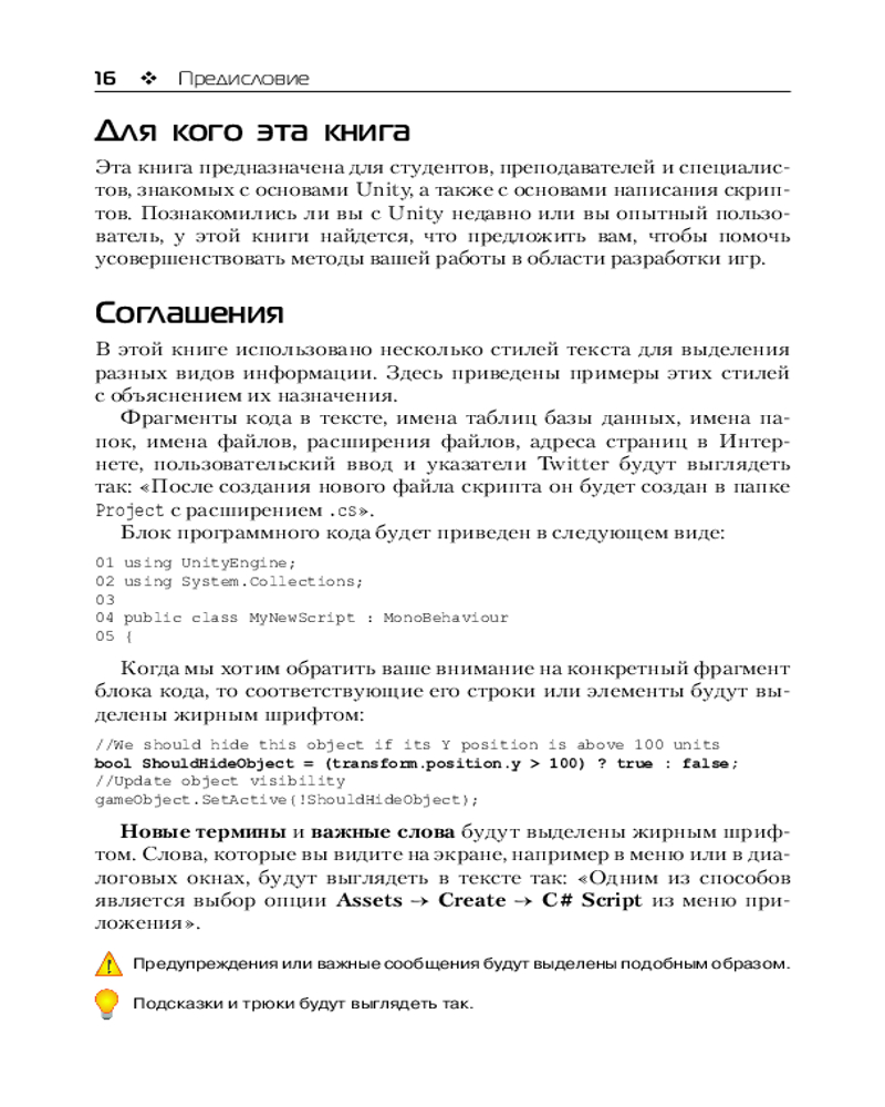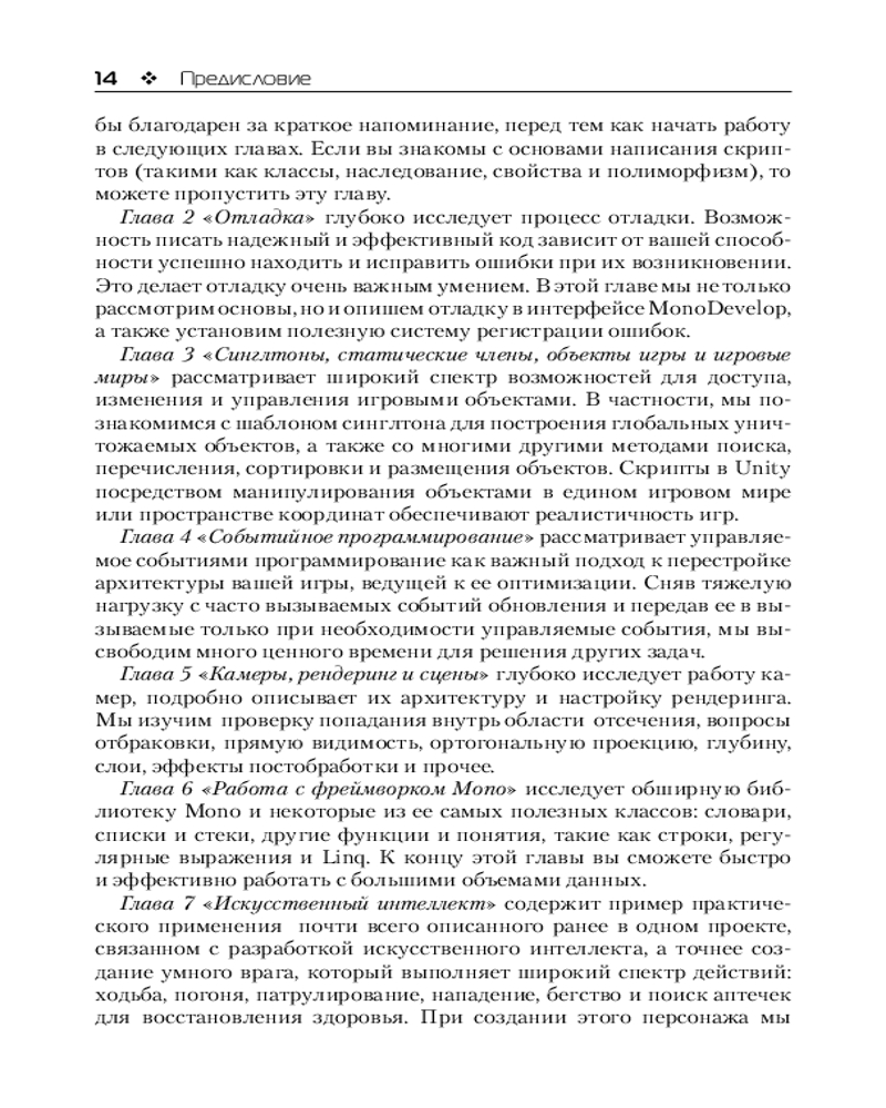 💳 Оплатить за товар можно при получении 🇰🇿 Есть бесплатная доставка по Казахстану от 1 дня 🎁 Копите бонусы с каждой покупки Практические советы и приемы создания игр на профессиональном уровне в Unity! Это простое и доступное руководство, в котором вы найдете полезные советы и современные приемы программирования игр на C# в Unity. Десять исчерпывающих глав книги содержат практические и наглядные примеры творческого подхода к программированию на C# и созданию коммерчески успешных игр профессионального уровня. Вы научитесь наделять игровых персонажей впечатляющим искусственным интеллектом, настраивать камеры для создания эффектов постобработки и управлять сценой, опираясь на понимание компонентной архитектуры. Кроме того, вы познакомитесь с классами .NET, позволяющими повысить надежность программ, увидите, как обрабатывать наборы данных, такие как файлы CSV, и как создавать сложные запросы к данным. Прочтя эту книгу до конца, вы станете сильным разработчиком Unity, вооруженным множеством инструментов и приемов быстрой и эффективной разработки коммерческих игр. Книга прежде всего адресована студентам, преподавателям и специалистам, знакомым с Unity, а также с основами программирования. Неважно, как давно вы знакомы с Unity, в этой книге вы найдете важную и полезную информацию, которая поможет вам эффективно наладить процесс создания игр. |