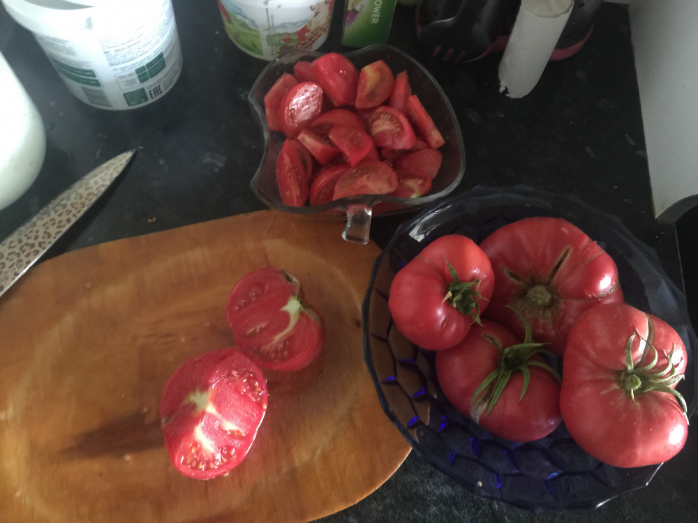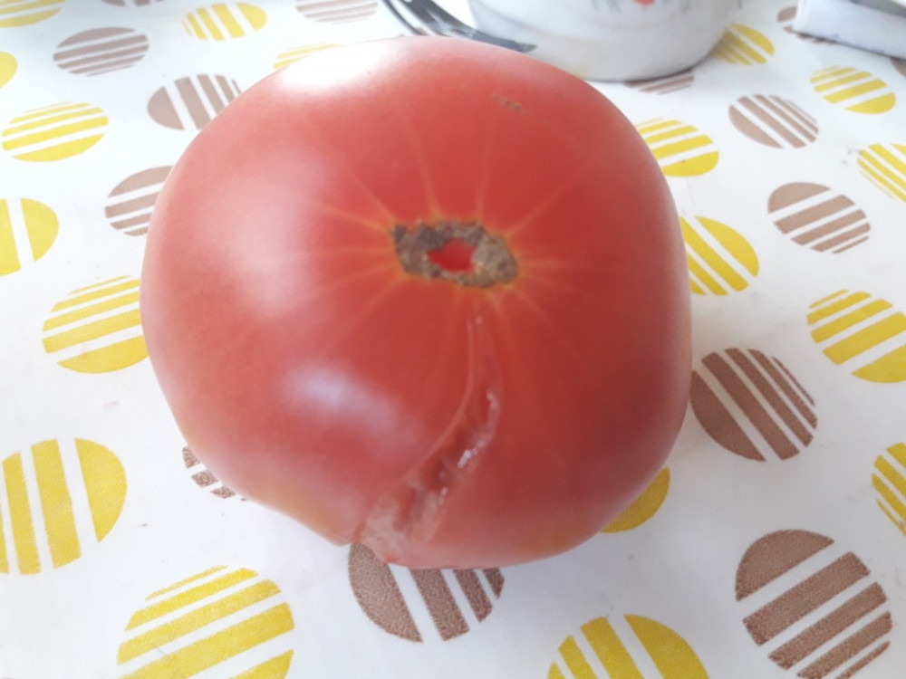 Первые из 27 сортов начали поспевать. Не считая черри (что именно за сорт, и откуда он попал, я не знаю ;) Высота более 2х метром. У меня они растут на грядках закрытых черным агроволокном и с капельным поливом. Также они растут и на обычных грядках, там они не более метра высотой. Кусты намного слабее. Первые 2 помидора были не очень крупные и потрескались (фото прилагается). Может я не правильно и не вовремя поливала :( Но помидорки очень вкусные. Буду заказывать еще.