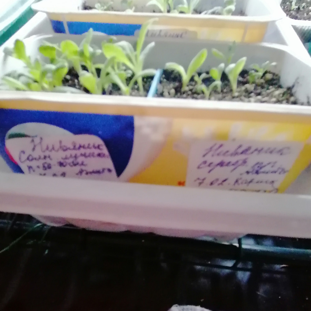 Семян много в пакете, можно досеять. У меня не очень хорошо взошли семена. Посмотрим, что из них получится. На фото видно, что справа хуже взошли семена, это и есть "Серебряная принцесса".