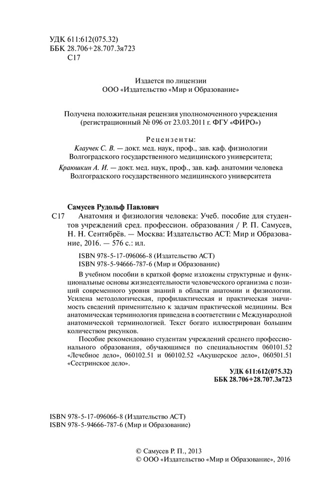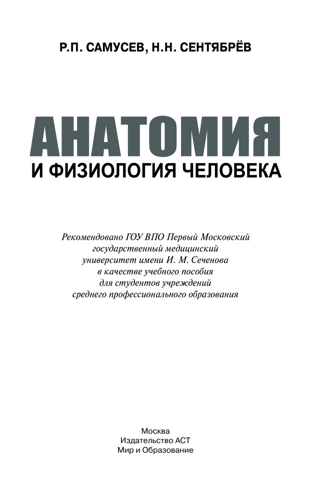 Анатомия и физиология человека. Учебное пособие для студентов учреждений среднего профессионального образованияРудольф Павлович Самусев, Николай Николаевич Сентябрев +370 доступный текст основной материал учебный формат