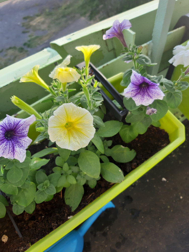 Гибридные петунии в этом году не удались. Хилые росточки. Из 10 желтых взошло 5, выжил 1, но крепкий.