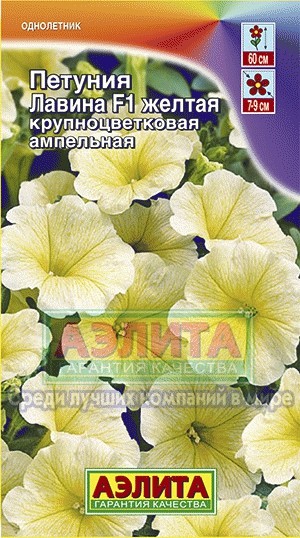 При посадке 24.03.2018г. на 30.03.2018г. взошли 9 из 10 семян. Отличный гибрид петунии полностью соответствующий описанию и фотографии на пачке. Цвет именно такой, нежно-желтый. К июлю-августу был здоровенный шаровидный куст в грунте. Петуния относится к кактегории многоцветковых иной раз листьев не видно. Отдала одну рассадину этого вида маминой знакомой, так потом получила кучу благодарностей и восторга, что изумительная петуния и красивая такая... Ну вот та петния на фото, что желтая и есть Лавина. Фото по состоянию на 31.07.2018г.