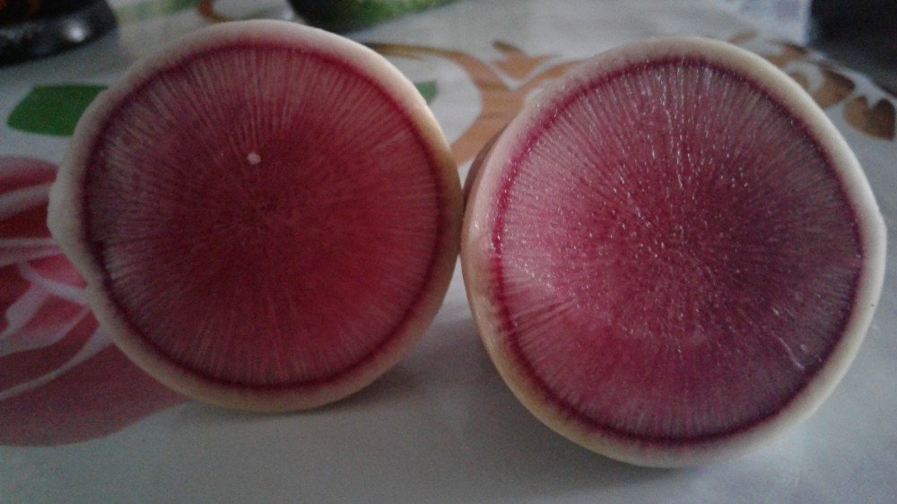 Хорошие семена, хороша редька, посев в июле, уборка в сентябре. Не стрелкуется. Сочная, красивая, не острая, сладковатая. Можно почистив прям так грызть, но я люблю в салат редька черная+редька китайская+лук репка+масло подсолнечное+соль и перчик ч. молотый.