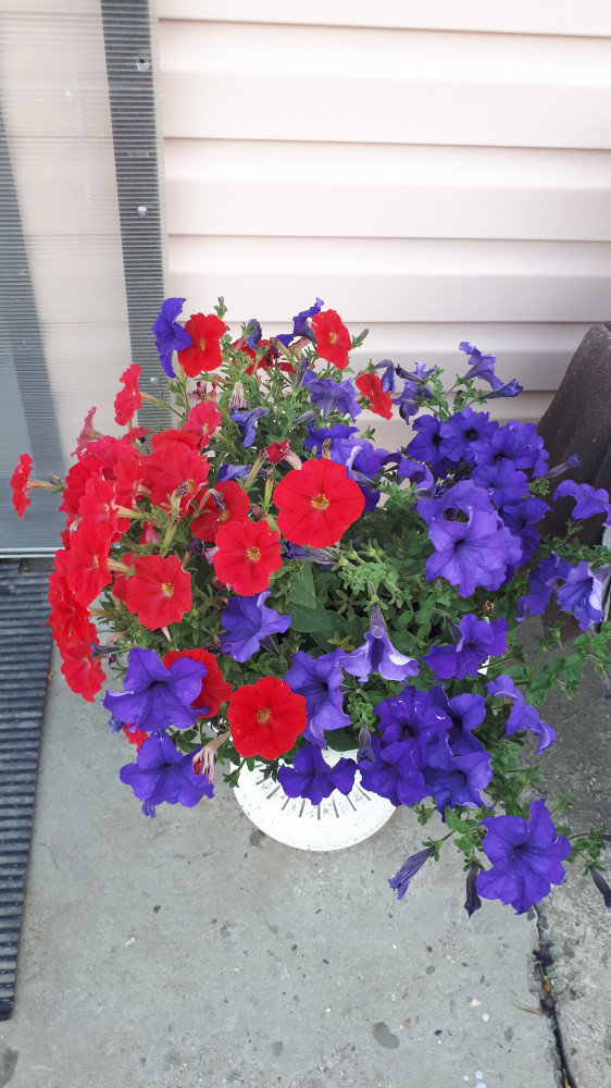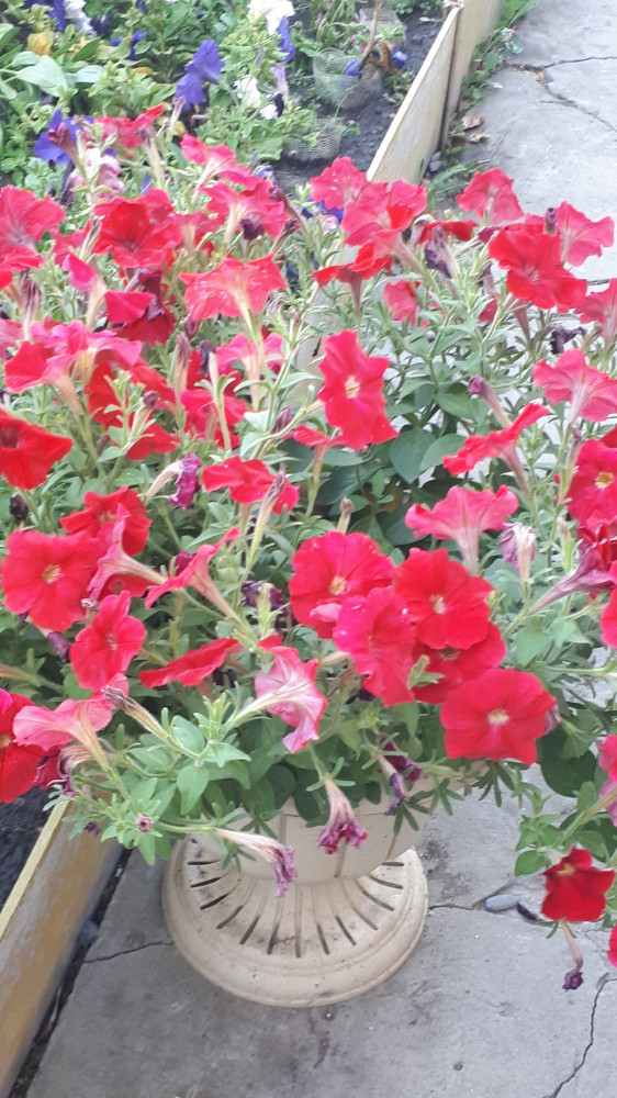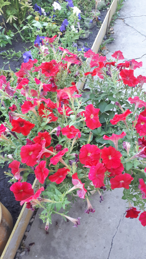 Взошли, пышно цвели, но почему-то именно этот цвет и сорт цветки "горели" на солнце, а синяя же не "горела".