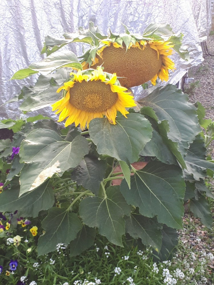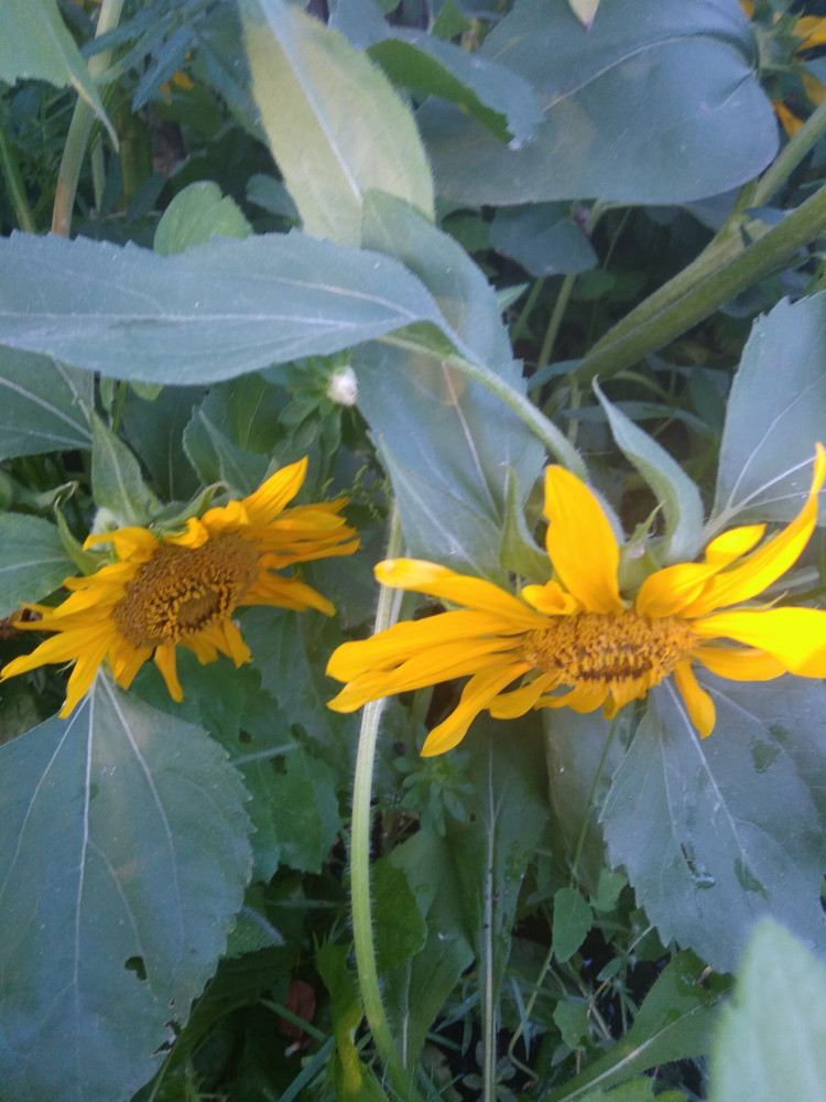Взошли дружно, ничего не боятся. Тесно, правда, им в одно горшке по двое, влаголюбивы, и у кого-нибудь так было, что из середины подсолнуха, выходил еще один цветок? - смотрятся странно!