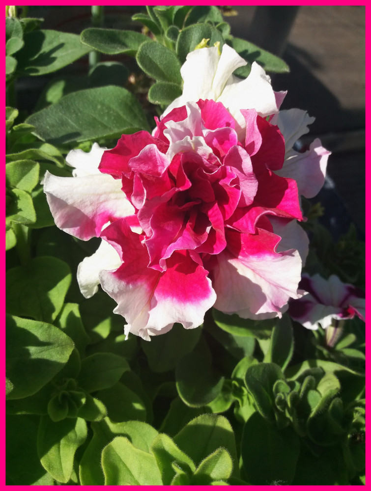 Очень красивая яркая петуния, цветок у меня всегда был разный по белой окантовке. Могло быть больше на одном, на другом лишь чуть чуть, но все равно смотрится эффектно. Семена взошли все 100%.