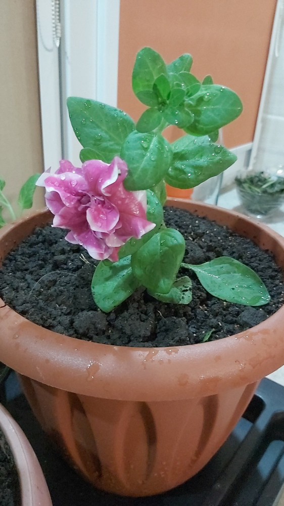 Очень красивая! В горшке вроде три кустика, если прищипывать будет гуще. Из рассады делала черенки, все принялись и быстро догнали основную рассаду.