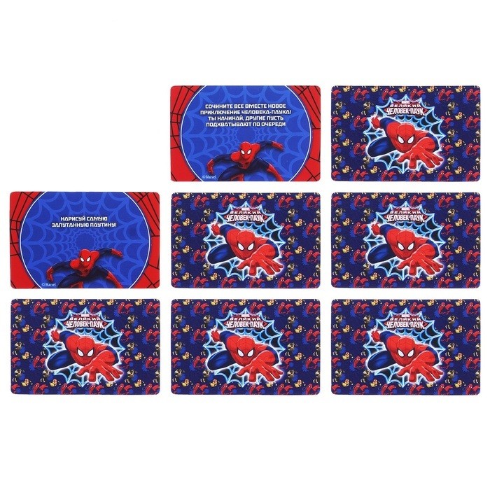 Карточки небольшие, по размеру как игральные карты. 20 заданий (нарисовать, сочинить, изобразить и пр.). Фанаты паука будут в восторге.