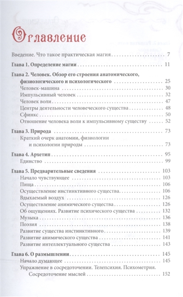 В ней содержится исчерпывающая информация, которой должен обладать человек, твердо решивший встать на путь изучения магии. Некоторые из тем: строение человека — анатомическое, физиологическое и психологическое; влияние пищи и различных возбуждающих веществ на состояние организма и разума; важность развития памяти, интеллектуального образования; различные психические упражнения — психометрия, управление мыслями; основы астрономической астрологии; магические соотношения между травами, животными и минералами — с одной стороны, и небесными телами (планетами и звездами зодиака) — с другой.