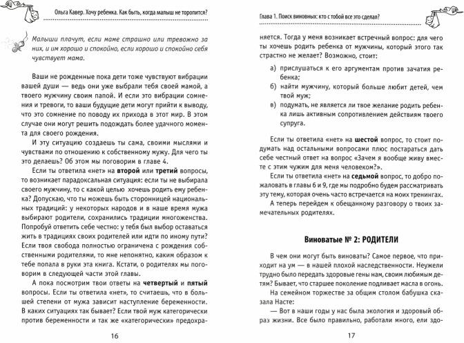 Книга-тренинг! Если вы готовы работать над своими страхами и установками, много практических заданий. Рекомендую абсолютно всем кто по каким-то причинам еще ждет заветные 2 полоски. Я в восторге от книги, уверена, не пожалеете. Даже не сомневайтесь.