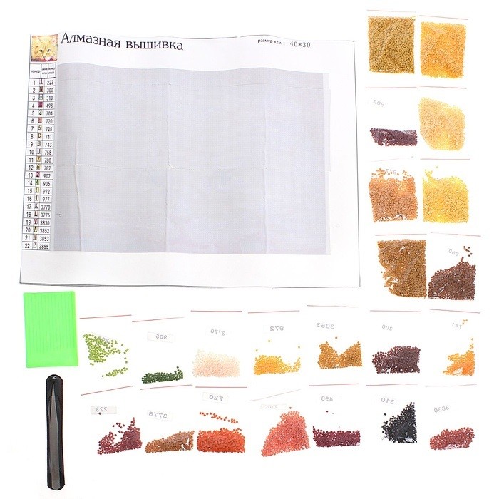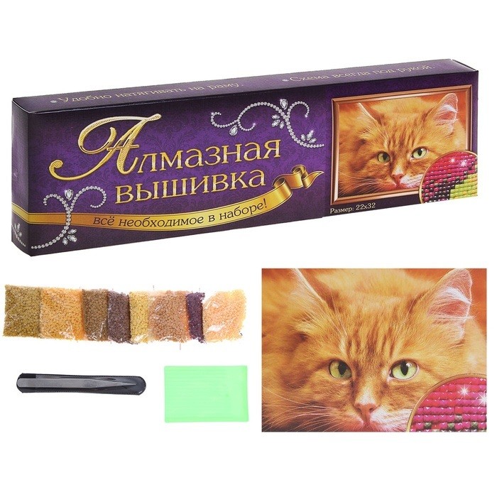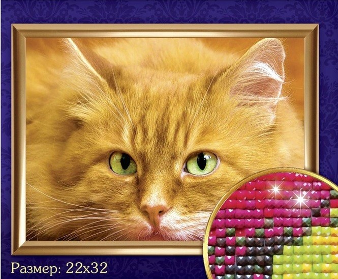 Алмазная вышивка квадратными стразами с полным заполнением «Кот» — это уникальный набор, в котором уже есть все необходимые элементы: холст, стразы, пинцет и ёмкость для страз. Тканевая основа имеет исключительное клеевое покрытие, которое надёжно удерживает кристаллики. С помощью пинцета вам нужно разложить их по нарисованной схеме с обозначением необходимых цветов, полностью заполнив полотно. Отдельно вас порадует то, что все цвета схемы расположены рядом с рабочей областью холста. А это значит, что схема всегда будет под рукой!