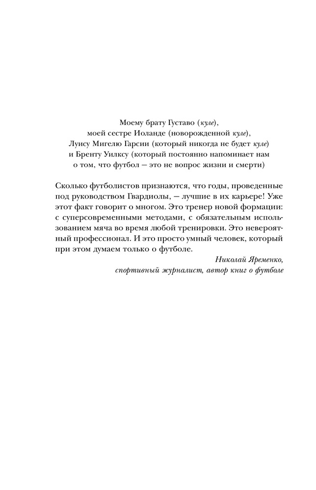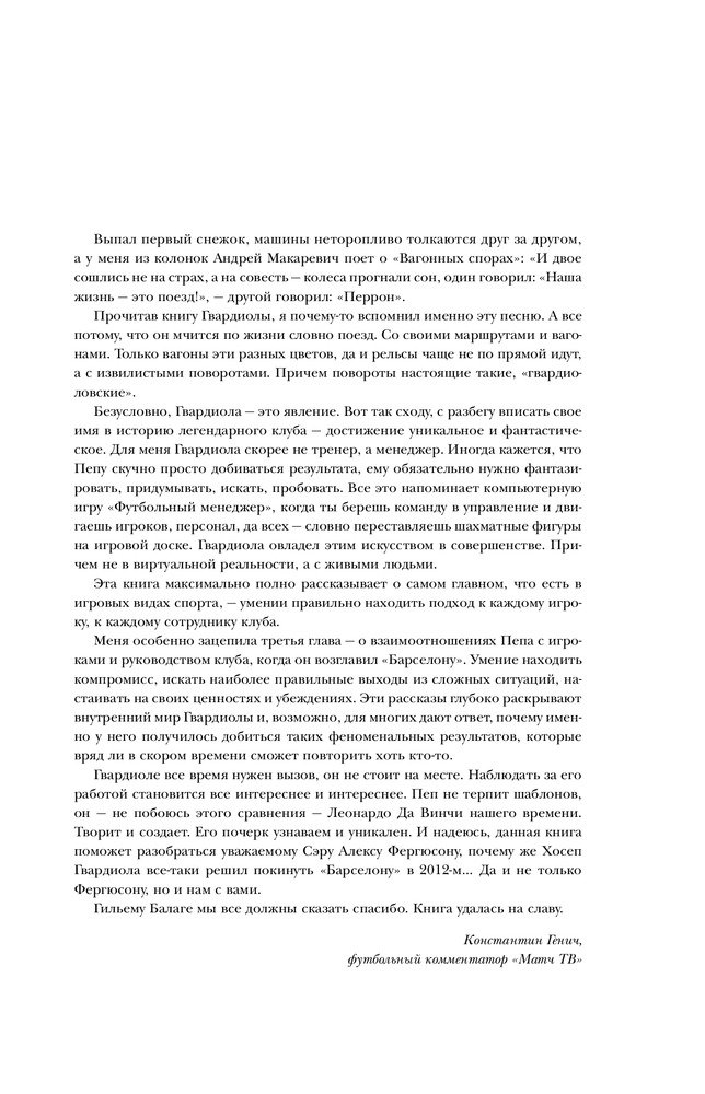 Классная книга. Для тех кто делает фокус на духовности и каждых мелочах, деталях. В книге очень много имён, так что если имеете отношение, увлекаетесь именно футболам то она будет интересная для Вас.