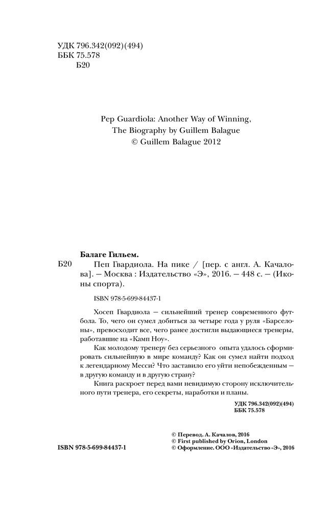 💳 Оплатить за товар можно при получении 🇰🇿 Есть бесплатная доставка по Казахстану от 1 дня 🎁 Копите бонусы с каждой покупки Серия: Иконы спорта Хосеп Гвардиола — сильнейший тренер современного футбола. То, чего он сумел добиться за четыре года у руля «Барселоны», превосходит все, чего ранее достигли выдающиеся тренеры, работавшие на «Камп Ноу». |