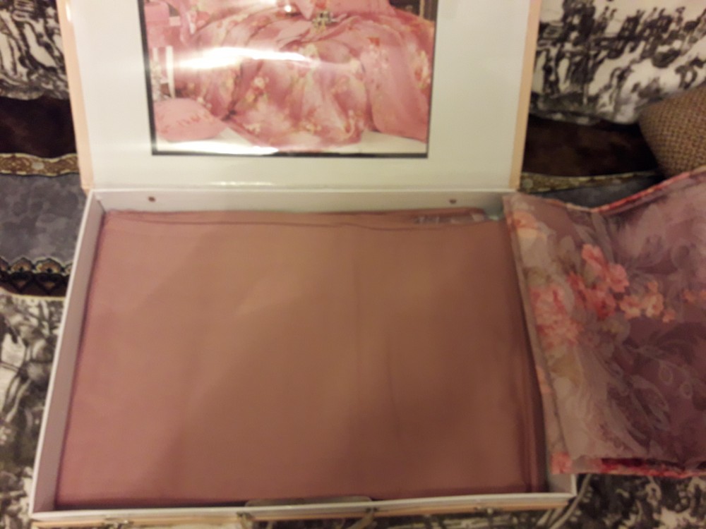 Товар доставлен в срок. Упаковка красивая, подарочная. Белье качественное. Это плюсы. Но цвет белья не такой, как на картинке. На картинке представлен основной фон белья светлый, розовый, а в оригинале темный, ближе к коричневому. Это меня расстроило. Я покупала белье в подарок на 10 лет свадьбы дочери. На такую дату нужно дарить белье розового цвета, так как свадьба называется розовой. А в ассортименте, как оказалось, другого цвета нет. Считаю, что, если фотография не отражает цвет белья, нужно указывать в описании о несоответствии фото с оригиналом.