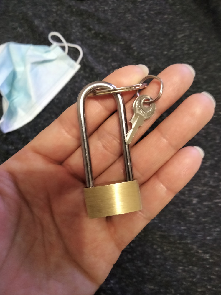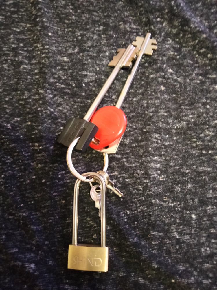 Малипусенький замочек. Как игрушечный. Но качественный. Взяла на работу, шкафчик закрывать.