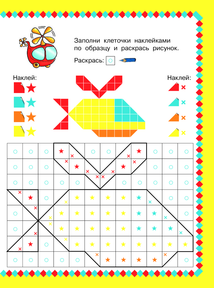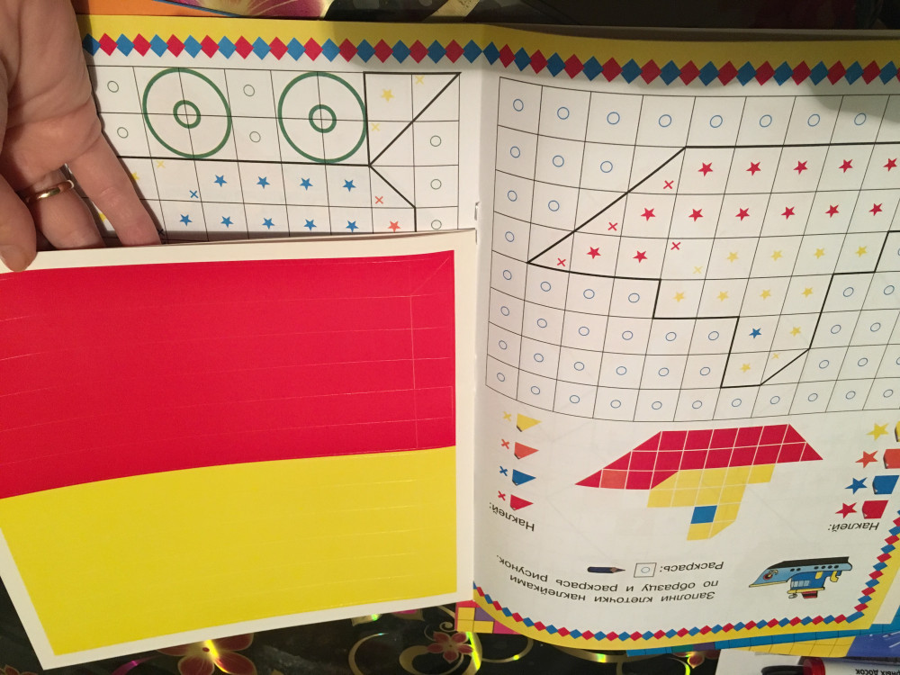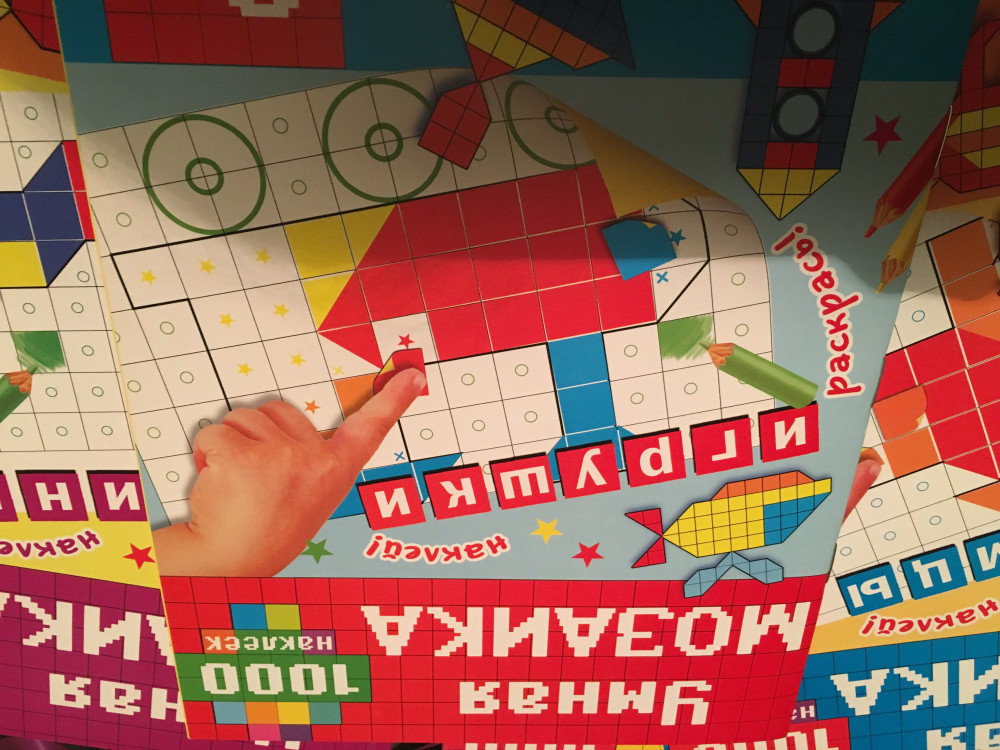 Развивает мелкую моторику, усидчивость, внимательность, нужно и клеить наклейки и рисовать карандашом, картинки получаются яркими, картинки больше рассчитаны для мальчиков: самолет, вертолет, ракета, кораблики, машина и т.д.