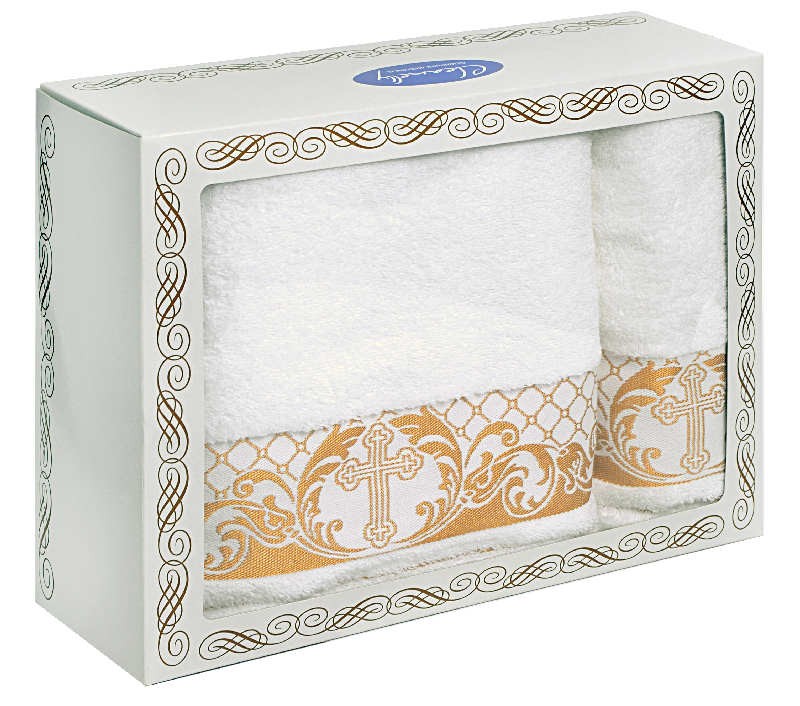 В данный момент этот товар отсутствует в продаже. Возможно, у нас найдется аналогичный или похожий товар здесь. Серия: Sacramento Полотенце махровое «Sacramento» производится из 100% натурального сырья и обладает высокой впитывающей способностью. Стойкость окраски и специальная противоусадочная технология обеспечивают длительное сохранение эстетических и качественных характеристик, гарантируя комфорт в эксплуатации и уходе. Комплект полотенец подходит для обряда крещения.