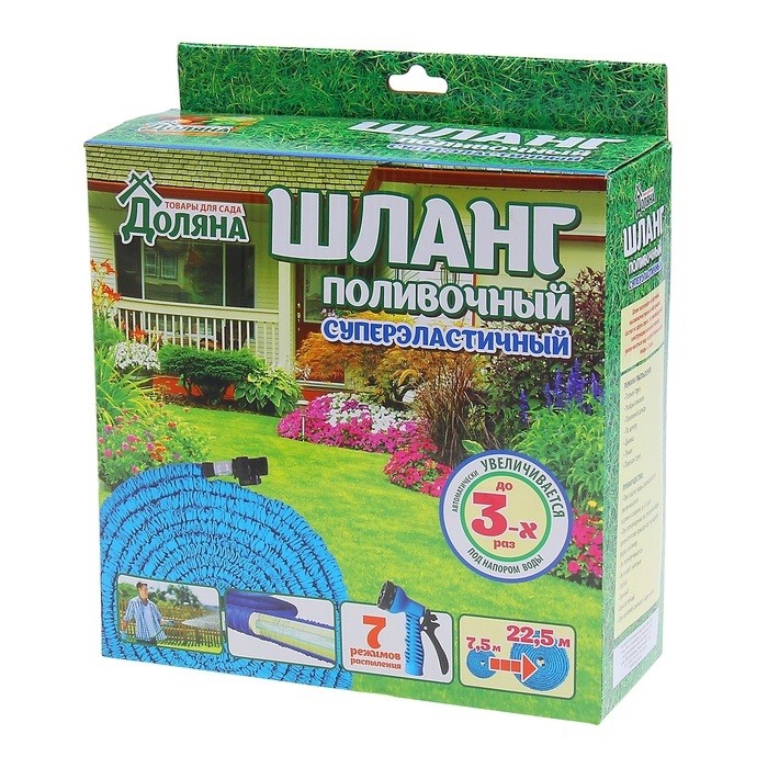Доляна Чудо-шланг латексный 75FT-B, распылитель 7 режимов, переходник 1/2, 3/4-35% +246 удобный прочность соответствие описанию 7 режимов