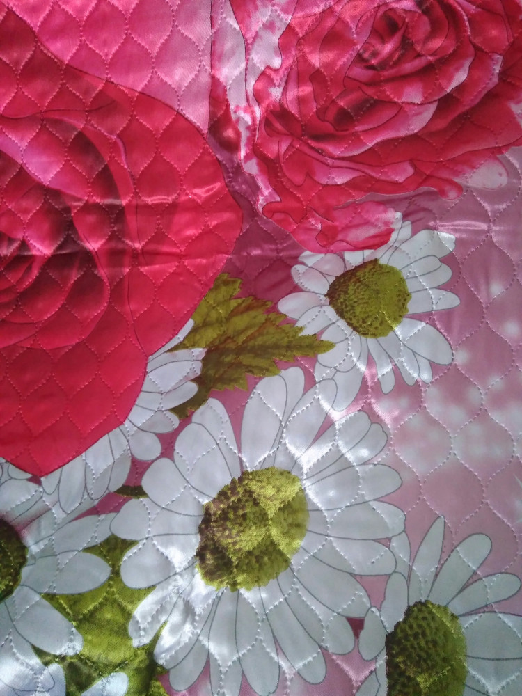 Покрывало понравилось. Мне как раз нужны были розы. Гладкое, блестящее, я довольна.