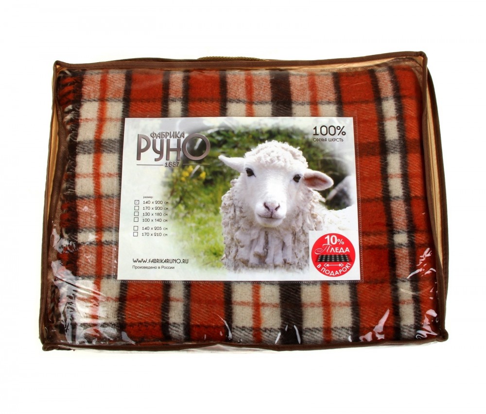 | Фабрика «Руно» Плед шерстяной «Орландо» (овечья шерсть, 140х200 см)