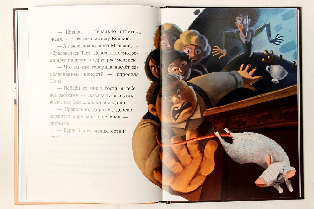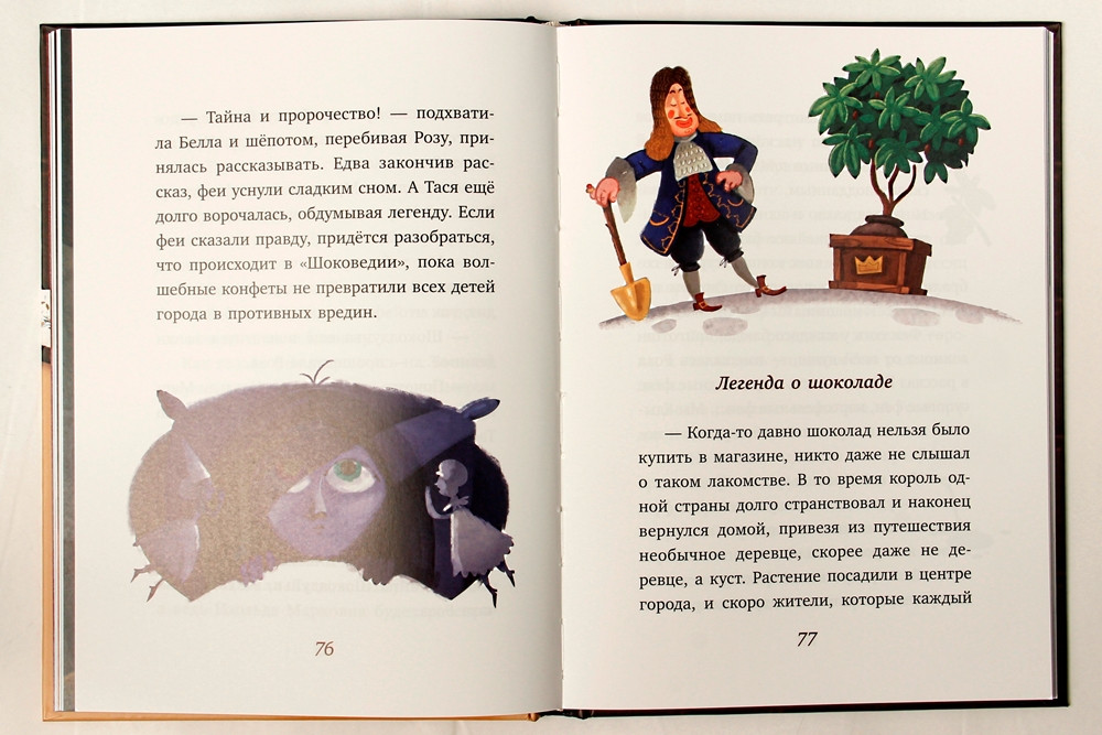 Интересная, с юмором, захватывающая, неожиданная, с загадкой, поучительная книга! Чего только стоит обложка в виде шоколадки! Подойдет для детей 5-6 лет. Книга достаточно объемная, и для своего пятилетки читаю выборочно, пропуская длинные описания. В этой книге есть и ведьма, и волшебство, и феи, и тайная комната, и смелые дети, и дружба, и испытания, то есть все необходимое для того, чтобы ребенок просил читать еще и еще. У нас она долго уже находится в "активном чтении", так что книгу рекомендую.