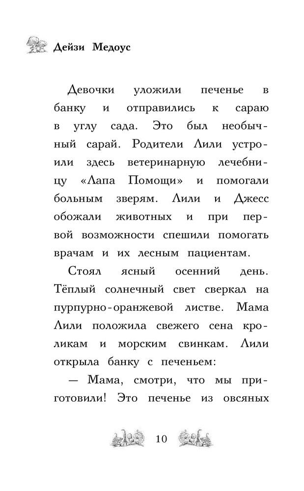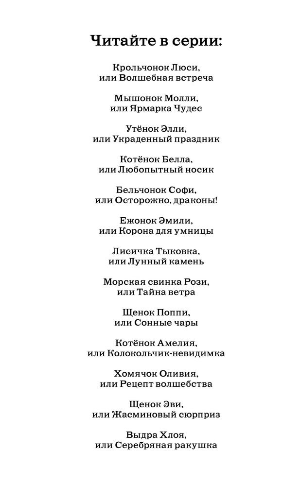Моя дочка очень любит эту серию. Читает ее взахлеб. Она так увлекается чтением, что этой книжки хватило ей всего на 2 дня. У нас уже целая коллекция серии "Лес Дружбы". Рекомендую. И, конечно, спасибо магазину и сотрудникам, продавцам за добродушное отношение. Всегда приветливы и внимательны к своим покупателям!!!