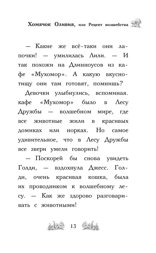 Хомячок Оливия, или Рецепт волшебстваВ данный момент этот товар отсутствует в продаже. Возможно, у нас найдется аналогичный или похожий товар здесь. Серия: Лес Дружбы. Волшебные истории о зверятах Голди пригласила Лили и Джесс судить конкурс пирожных, а на него явилась незваная гостья – ведьма Гризельда со своими помощниками-грязнулями. Грязнули тут же начали швыряться пирожными и творить прочие пакости, а когда хомячок Оливия попыталась им помешать, то подручный ведьмы летучий мышонок Шорох ее заколдовал! Чтобы спасти праздник, Лили и Джесс срочно надо найти способ снять заклятие! |