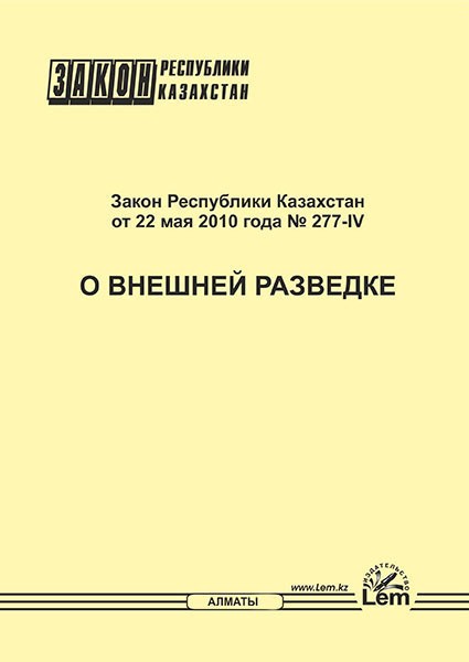 💳 Оплатить за товар можно при получении 🇰🇿 Есть бесплатная доставка по Казахстану от 1 дня 🎁 Копите бонусы с каждой покупки Закон РК о внешней разведке от 22 мая 2010 года №277-IV. |