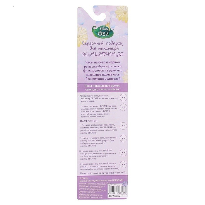 Disney Часы наручные электронные «Феи»В данный момент этот товар отсутствует в продаже. Возможно, у нас найдется аналогичный или похожий товар здесь. Серия: Феи Все дети хотят поскорее повзрослеть, иметь свою машину, мобильный телефон и, конечно же, наручные часы, как у мамы и папы. Подарите чаду часы наручные электронные «Феи» с изображением любимых героев Disney, и он будет прыгать от восторга! Все друзья будут завидовать такому красивому и функциональному аксессуару, а ребёнок научится следить за временем. Дети быстро растут, а благодаря безразмерному |