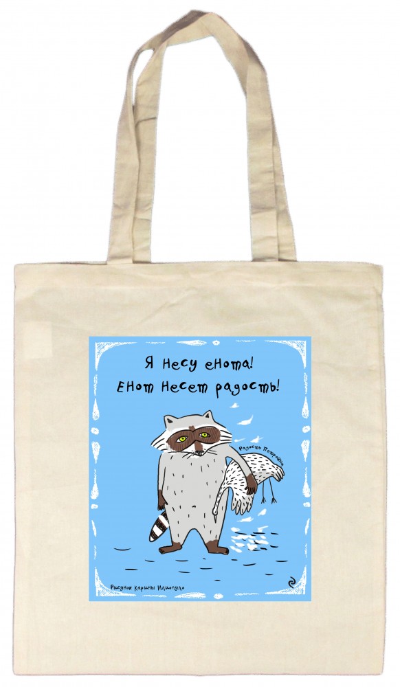Отличная сумка. Можно сказать "хипповая". Материал на этикетке указан хлопок. Картинка нанесенная сверху имеет запах, но думаю выветрится. Я ношу такие сумки, и искала специально. Жду еще поступления енота "с печенькой".