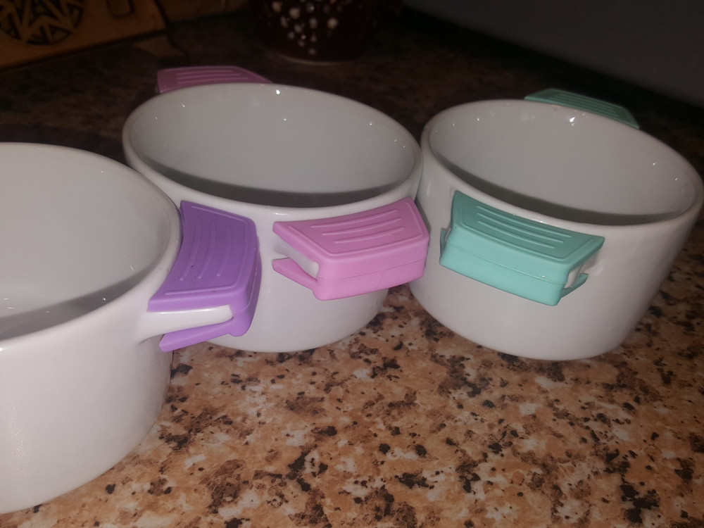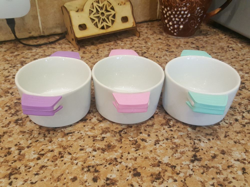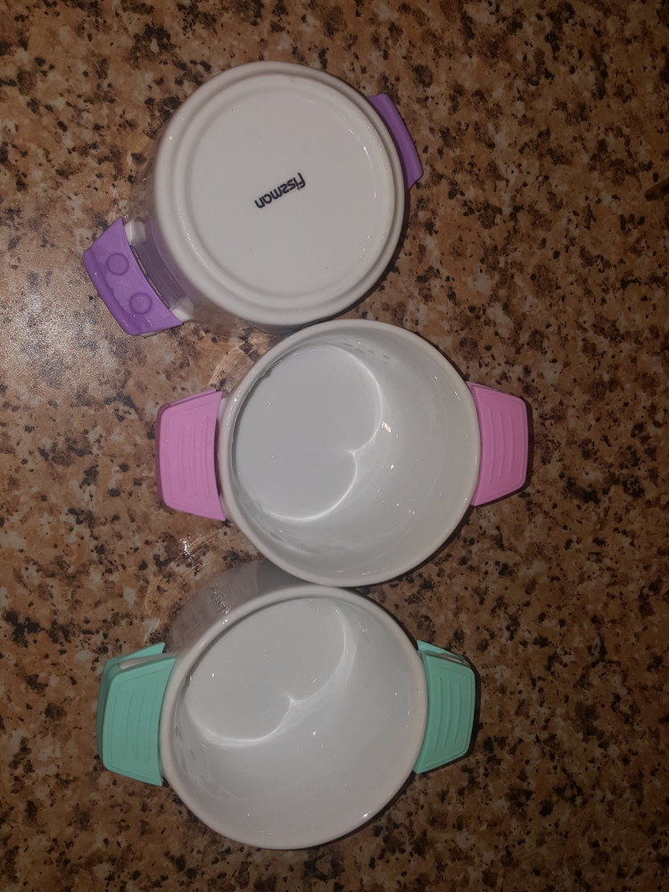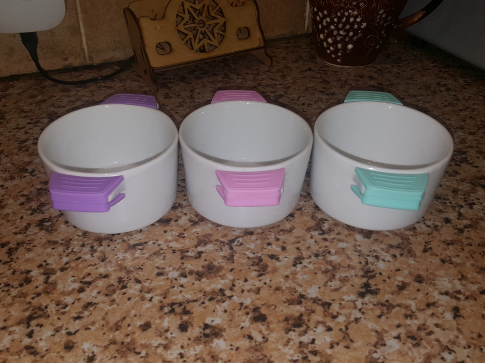 Очень хорошие чашечки, силиконовые ручки защищают, дети сами могут разогреть и достать. Объем самый оптимальный.