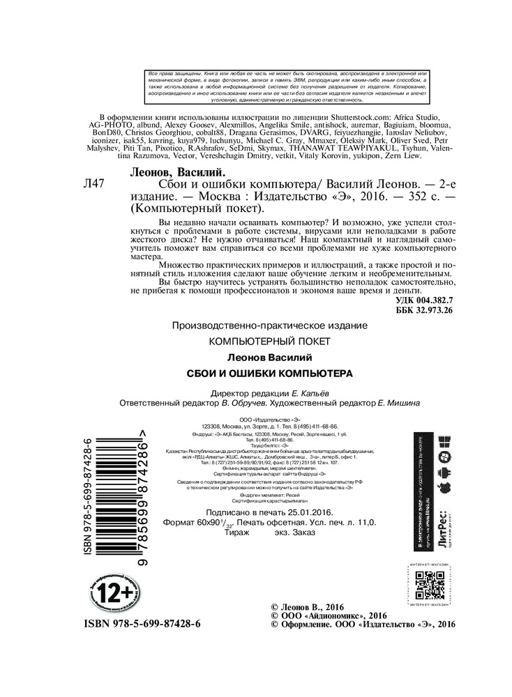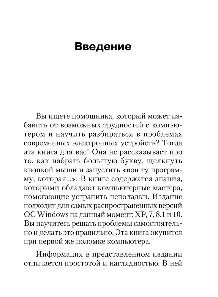 Сбои и ошибки компьютераВ данный момент этот товар отсутствует в продаже. Возможно, у нас найдется аналогичный или похожий товар здесь. Серия: Компьютерный покет Вы недавно начали осваивать компьютер? И возможно, уже успели столкнуться с проблемами в работе системы, вирусами или неполадками в работе жесткого диска? Не нужно отчаиваться! Наш компактный и наглядный самоучитель поможет вам справиться со всеми проблемами не хуже компьютерного мастера. Множество практических примеров и иллюстраций, а также простой и понятный стиль изложения сделают ваше обучение легким и необременительным Вы быстро научитесь устранять большинство неполадок самостоятельно, не прибегая к помощи профессионалов и экономя ваше время и деньги. |