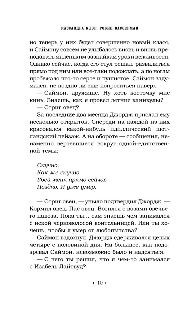 Кассандра Клэр родилась за пределами США, в столице Ирана — Тегеране. Ее семья много путешествовала и к 10 годам Кассандра успела побывать в Англии, Франции и Швейцарии, но куда бы она ни поехала, с ней всегда были любимые книги. Школу Кассандра закончила в Лос Анджелесе, а в старших классах начала писать собственные рассказы для развлечения друзей. После колледжа она разрывалась между родной Калифорнией и Нью-Йорком, где работала колумнистом и редактором в нескольких развлекательных... |