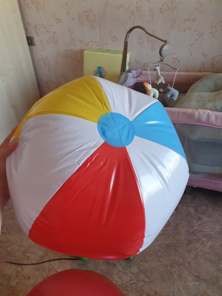 Отличный и прочный пляжный мяч за смешную цену. К тому же он очень безопасный для маленьких детей, играть можно уже с 3-х лет!