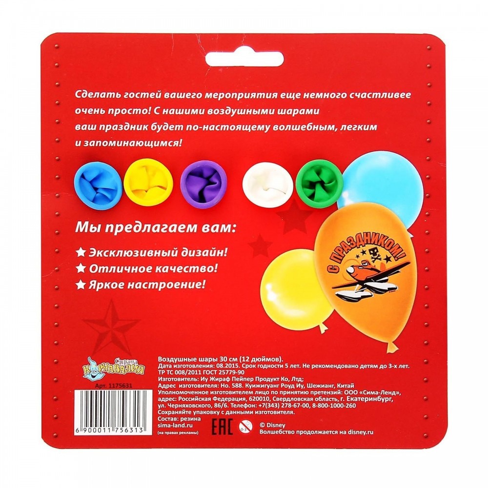 Отзывы «Воздушные шары «С праздником! Самолеты» (набор 5 шт), 30 см»