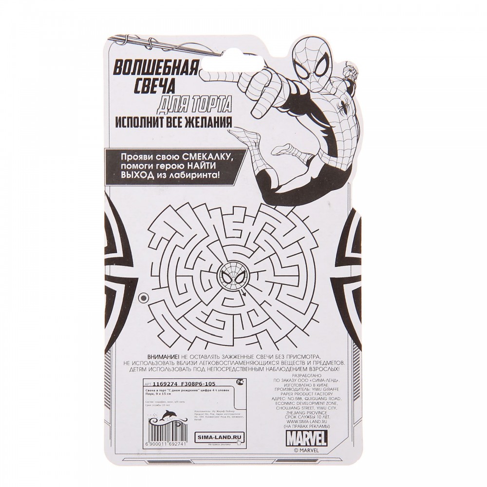 Marvel Свеча в торт «С днем рождения!», цифра 4, Человек-ПаукВ данный момент этот товар отсутствует в продаже. Возможно, у нас найдется аналогичный или похожий товар здесь. Что может быть приятнее в день рождения, чем торт, украшенный свечами с любимыми героями мультфильмов Marvel? Свеча в торт «С днем рождения!», цифра 4, Человек-Паук обязательно обрадует маленького виновника торжества и сделает праздник незабываемым! И взрослые, и дети знают,какие бурные эмоции возникают при их задувании, ведь в любом возрасте мы мечтаем об исполнении желаний. На обратной стороне упаковки есть весёлое развлечение. |