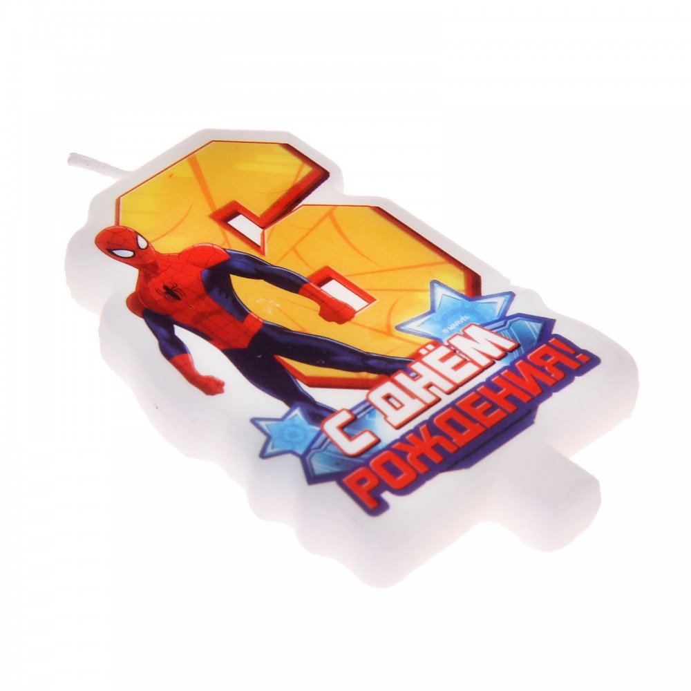 Свеча в торт «С днем рождения!», цифра 6, Человек-Паук | Marvel
