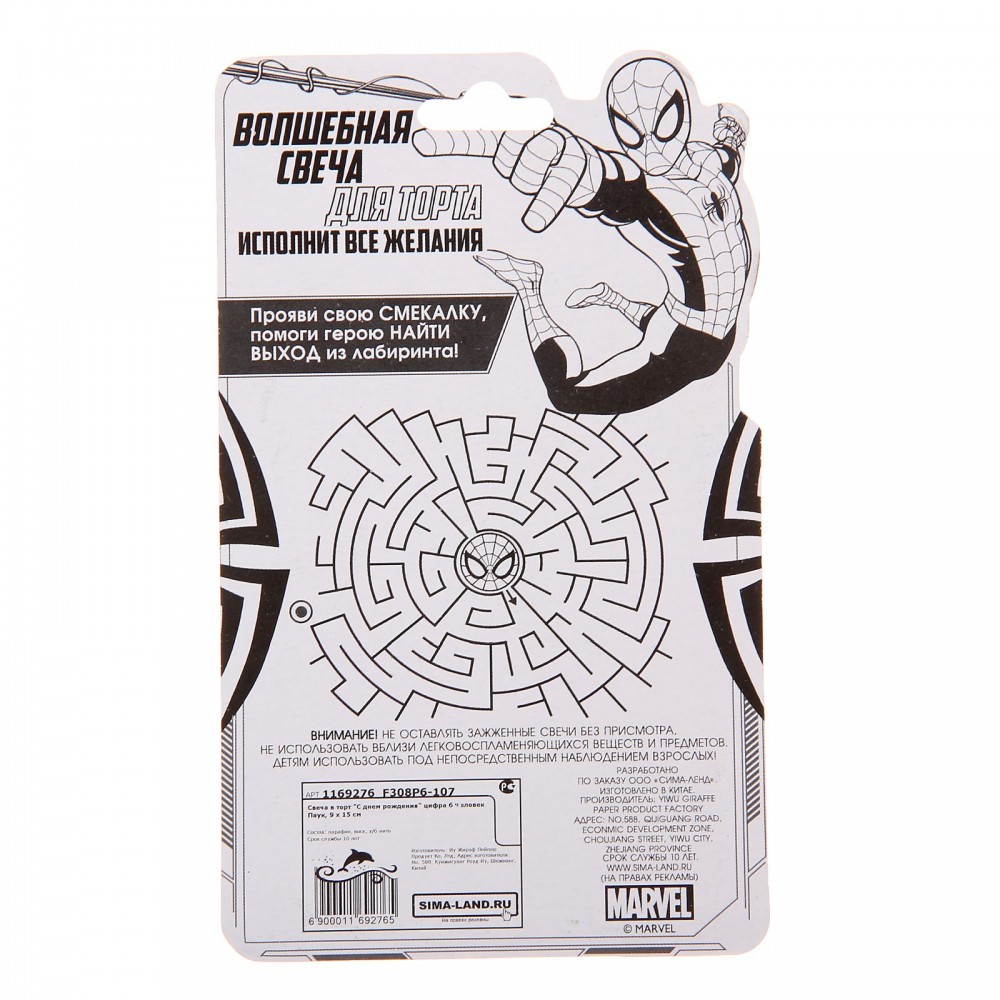 Marvel Свеча в торт «С днем рождения!», цифра 6, Человек-Паук