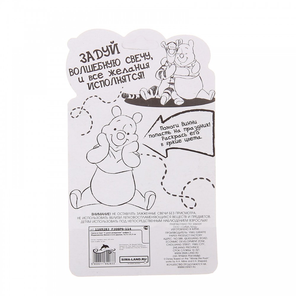 Disney Свеча в торт «С днем рождения», цифра 5, Медвежонок ВинниВ данный момент этот товар отсутствует в продаже. Возможно, у нас найдется аналогичный или похожий товар здесь. Серия: Медвежонок Винни и его друзья Что может быть приятнее в день рождения, чем торт, украшенный свечами с любимыми героями мультфильмов Disney? Свеча в торт «С днем рождения», цифра 5, Медвежонок Винни обязательно обрадует маленького виновника торжества и сделает праздник незабываемым! И взрослые, и дети знают,какие бурные эмоции возникают при их задувании, ведь в любом возрасте мы мечтаем об исполнении желаний. На обратной стороне упаковки есть весёлое развлечение. |
