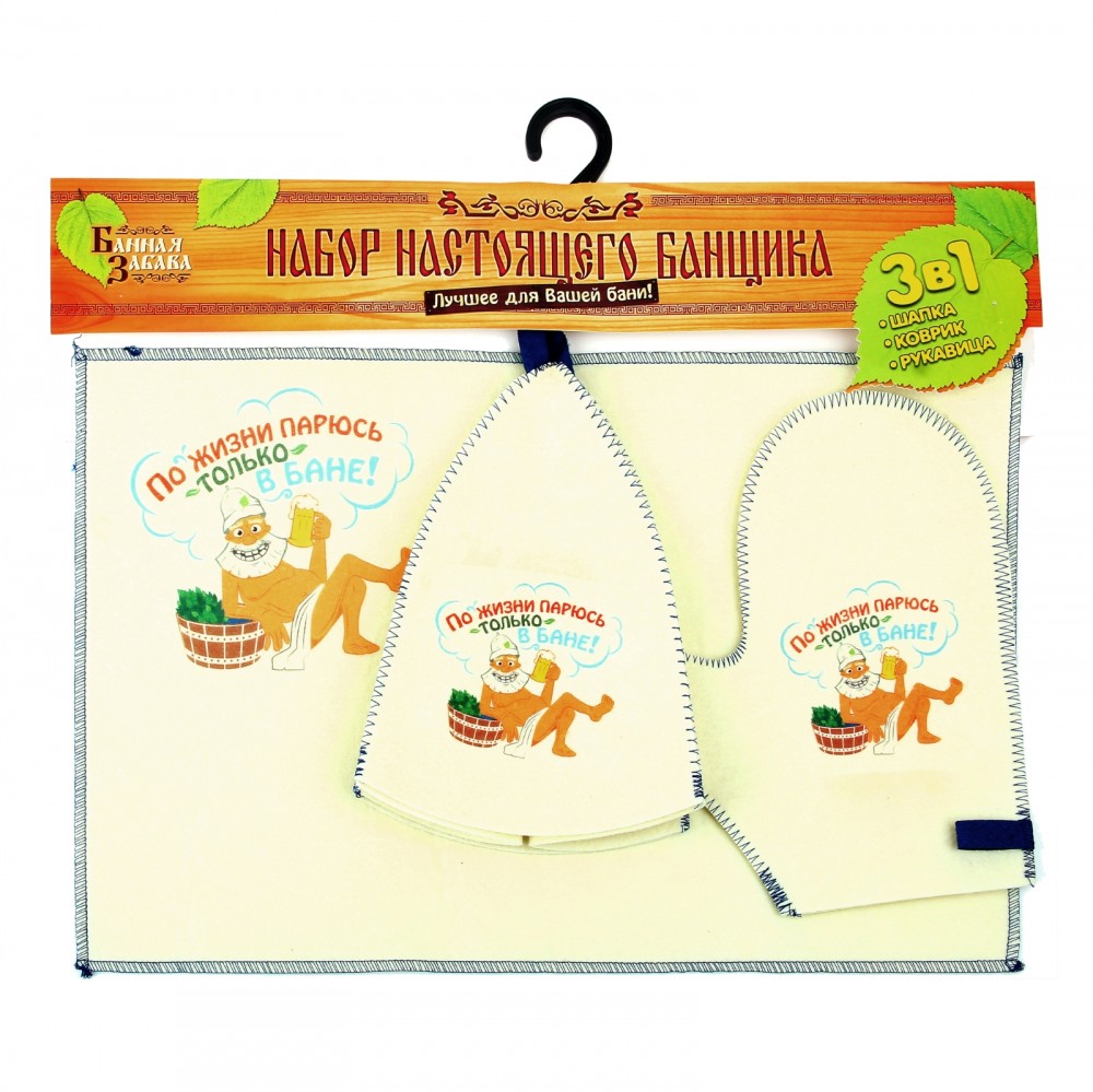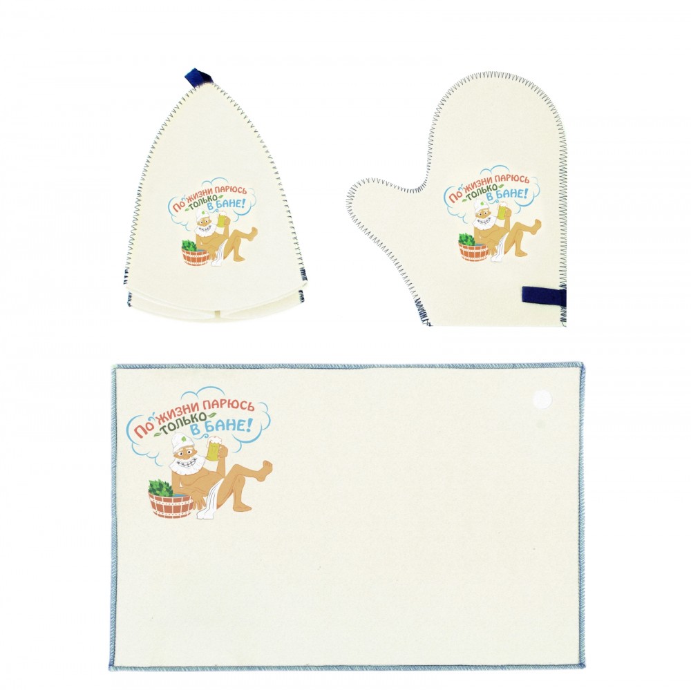 | Набор банный «По жизни парюсь только в бане» (коврик, шапка, рукавицы)