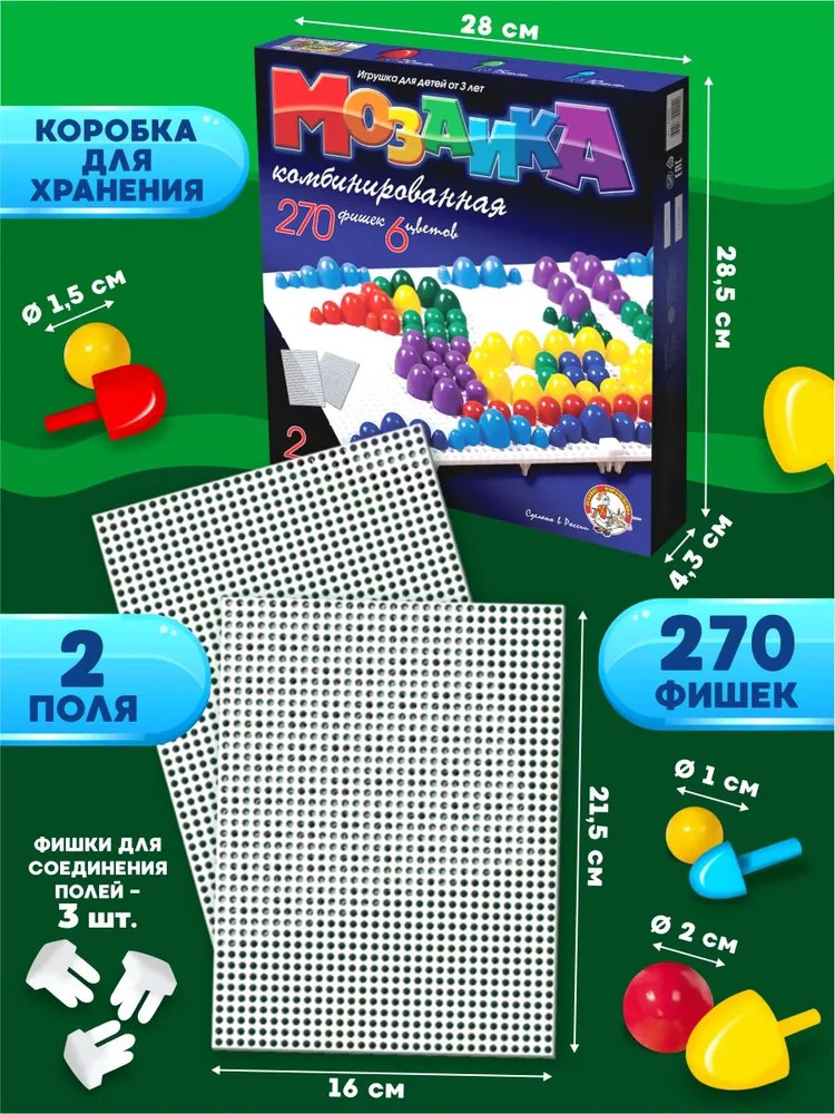 💳 Оплатить за товар можно при получении 🇰🇿 Есть бесплатная доставка по Казахстану от 1 дня 🎁 Копите бонусы с каждой покупки Методы воспитания и образования будут меняться бесконечно, но во все времена постоянным остается одно — это радость ребенка от подаренной ему игрушки. Как известно, счастливая улыбка ребенка — самая большая награда для родителей. Сделана специально для детишек мозаика круглая, 270 элементов по 10, 15, 20 мм, 6 цветов, 2 платы станет отличным подарком вашему малышу. |