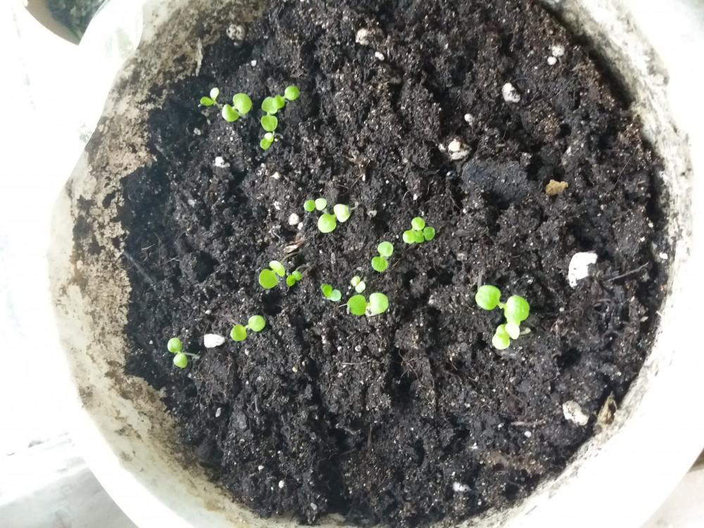 Семена довольно мелкие, поэтому посадила в маленький горшочек. На третий день проросли наверное все семена и им оказалось тесно в этом горшочке. Рекомендую сразу сажать в горшочек побольше. Растут хорошо.