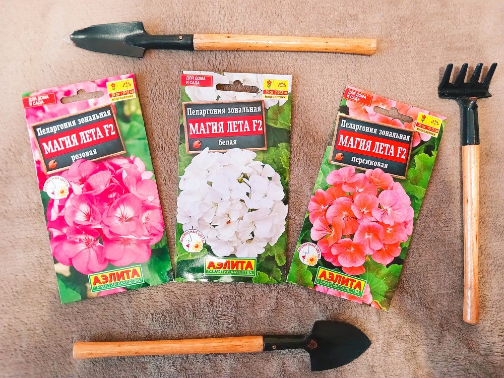 Приобрела новые пеларгонии. 🤩 А вот здесь интрига, поскольку никогда не выращивала данное растение из семян, все пеларгонии, что у меня были и есть сейчас произросли посредством черенкования. Надеюсь, что получится вырастить столь красивые сорта. Именно такого розового и персикового оттенка у меня ещё не было, были белые пеларгонии, но там листики были другие - светло зелёные, а здесь заявлены тёмно-зелёные с ободком. 🙂🌸🌼🏵👩🌾