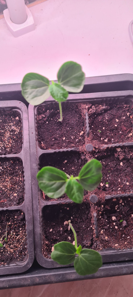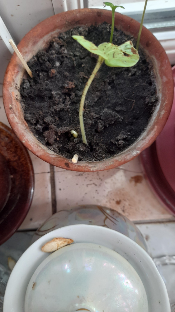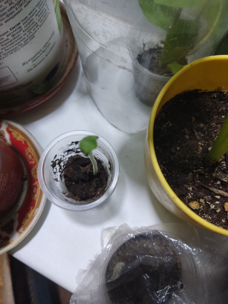 Все три семки взошли в течение двух недель, что радует. Пока только с семядольками, надеюсь вырастить ту самую красоту.