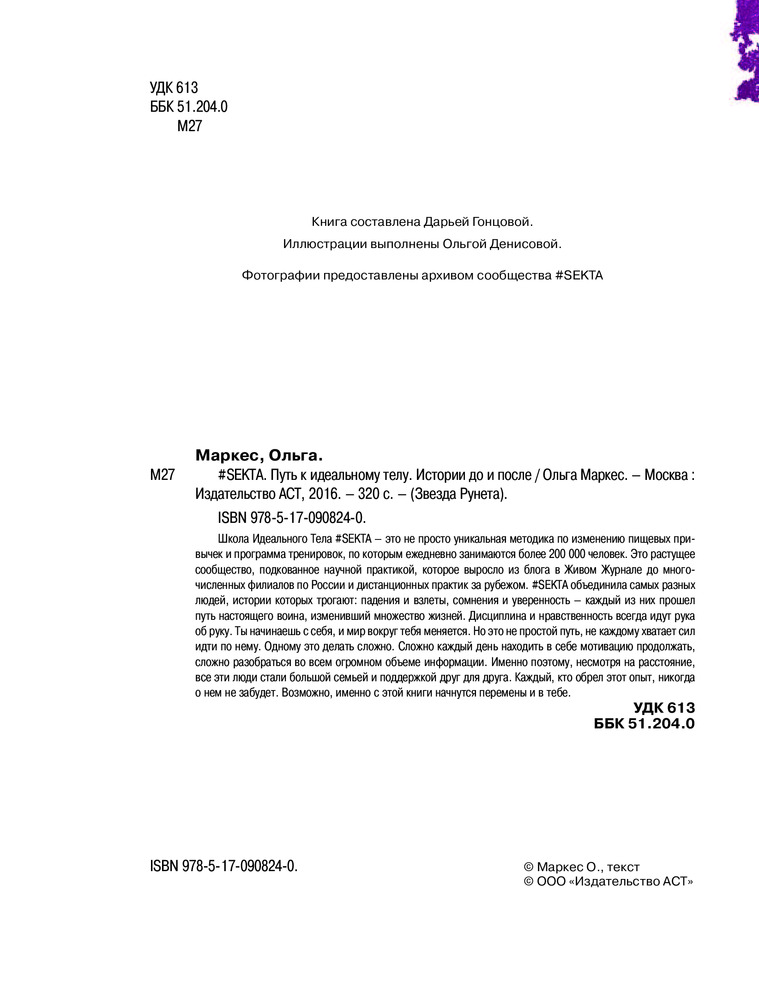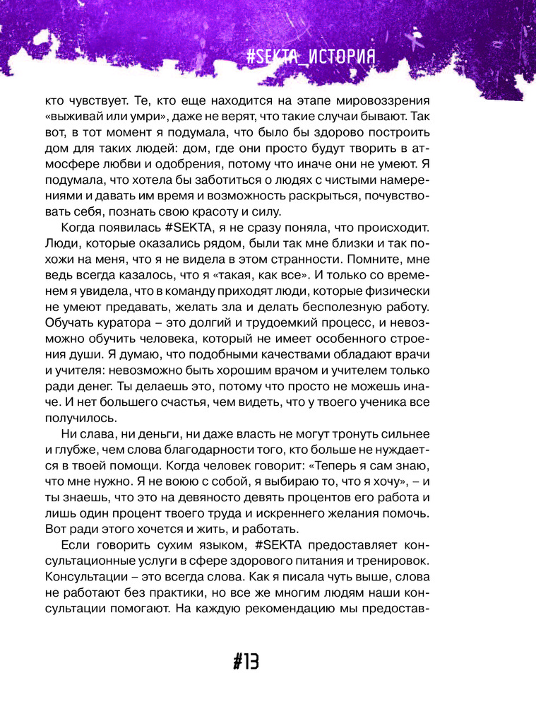 Я знакома с принципами школы идеального тела #sekta не понаслышке - сама им стараюсь следовать. А книга очень вдохновляющая! О том, как важно любить себя в любом весе и в любом теле, что от образа жизни в целом зависит не только внешний вид, но и здоровье, и то, как мы себя ощущаем! Рекомендую к прочтению всем!