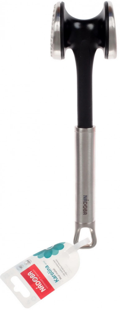 Молоток Nadoba Karolina изготовлен из высококачественной нержавеющей стали: этот материал имеет высокую стойкость к механическому износу, не подвержен коррозии, а главное — нержавеющая сталь не влияет на вкусовые свойства продуктов. Аксессуар имеет оптимальную массу: она достаточна для эффективного использования молотка, но не настолько высока, чтобы заставить вас устать в процессе приготовления пищи. Форма и фактура ручки молотка способствует его удобному хвату. Кухонный прибор удобно хранить: в наличии отверстие для подвешивания.
