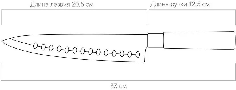💳 Оплатить за товар можно при получении 🇰🇿 Есть бесплатная доставка по Казахстану от 1 дня 🎁 Копите бонусы с каждой покупки Серия: Keiko Традиционный японский поварской нож Keiko — универсальный и многофункциональный кухонный инструмент, который подходит для разделывания мяса, птицы и рыбы. Лезвие металлического ножа длиной 20,5 см выполнено из высококачественной нержавеющей стали, за счет пятигранного профиля клинок отличается высокой прочностью режущей кромки, качественным резом и простотой заточки. На лезвии присутствуют специальные выемки, которые создают воздушный карман при нарезке и шинковке овощей и других продуктов и предназначены для уменьшения прилипания пищи к ножу. Толщина лезвия у обуха стального ножа составляет 1,6 мм и обеспечивает высокую прочность, хороший баланс, а также удобство и безопасность работы с ножом. Твердость лезвия ножа составляет 52-54 HRC по шкале Роквелла. Эргономичная ручка ножика с гладкой поверхностью удобно лежит в руке во время использования, не скользит и легко моется. Материал ручки поварского ножа — специальный высококачественный пластик, устойчивый к механическим воздействиям. |